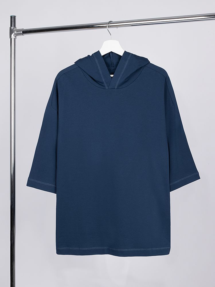 Футболка оверсайз унисекс с капюшоном Neofit, темно-синяя, размер XL/XXL с логотипом компании - отличный способ заявить вашу корпоративную идентичность.