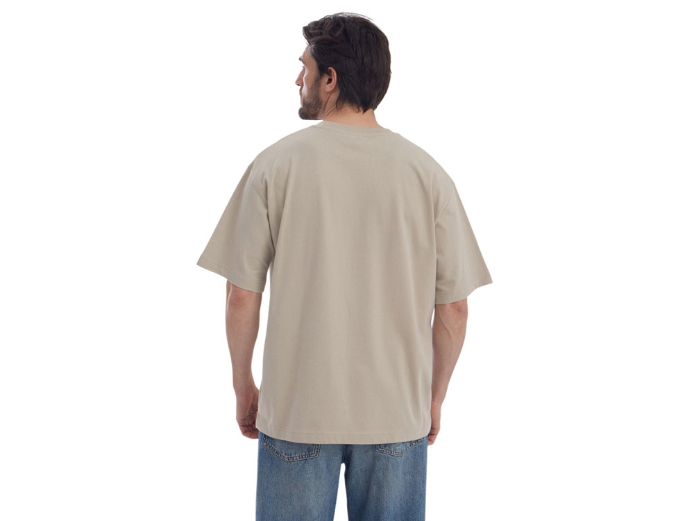 Футболка из 100% хлопкового полотна плотностью 180 г/м? — оптимальный баланс между комфортом, внешним видом и износостойкостью. Отделка пич-начёс придаёт ткани мягкую, бархатистую текстуру и благородный матовый эффект, делая изделие особенно приятным к телу.