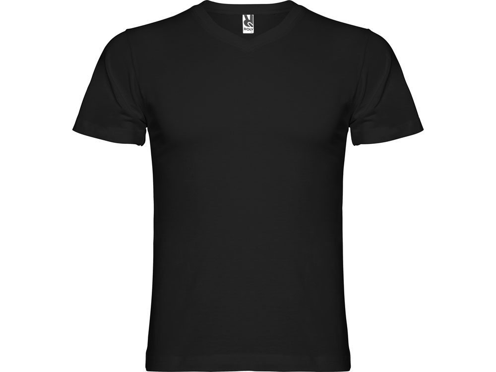Мужская футболка без боковых швов с коротким рукавом и V-образным вырезом горловины, отделанном рибом 1х1. Горловина и плечевые швы дополнительно укреплены тесьмой.