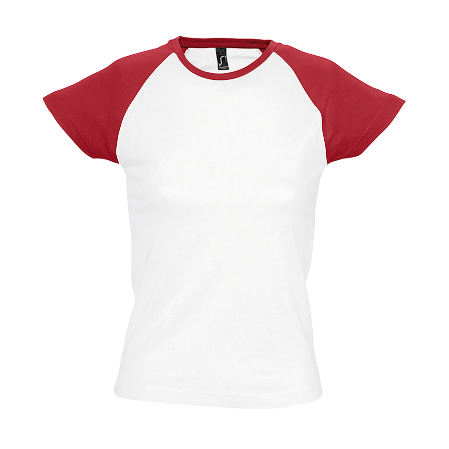 Двухцветная женская футболка MILKY является парой к мужской футболке FUNKY. Благодаря констрастирующим цветным коротким рукавам реглан она выглядит оригинально и стильно, а отсутствие боковых швов обеспечивает широкое поле для печати любого креатива.