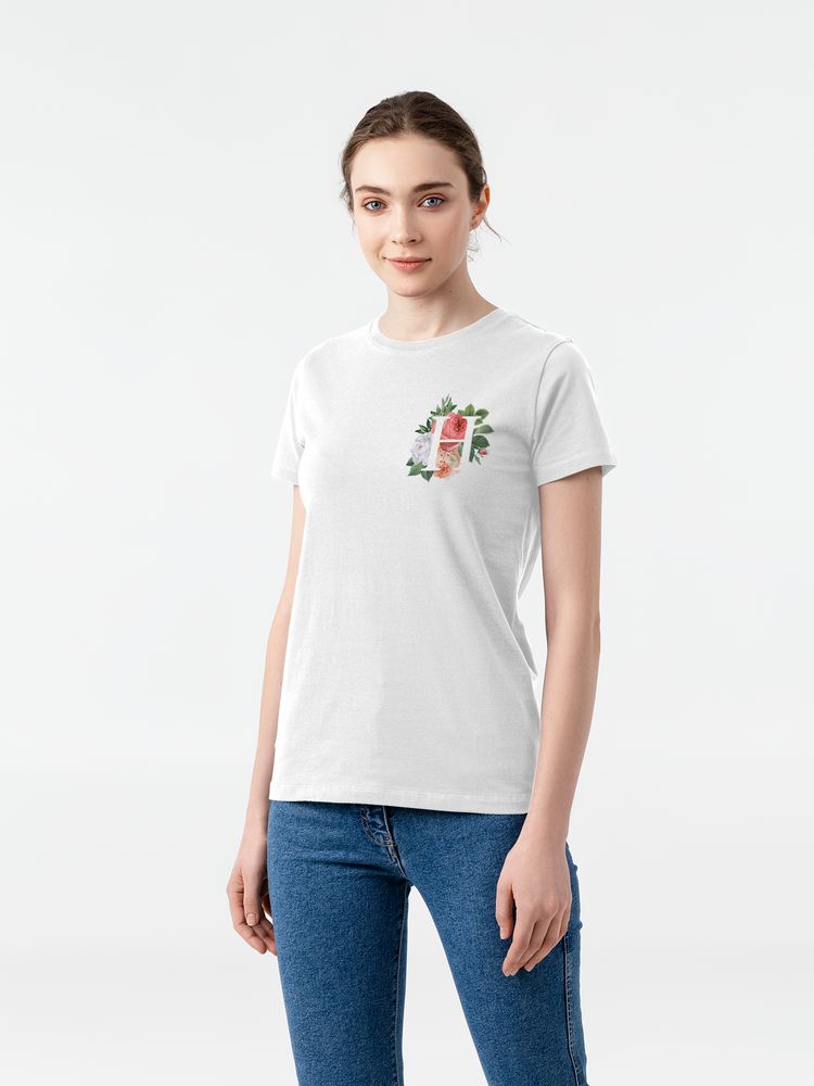 Компания «Эклектика BY» осуществляет нанесение логотипа на сувенирную продукцию: Футболка женская «Цветочная азбука: Н», белая. Арт. 116362