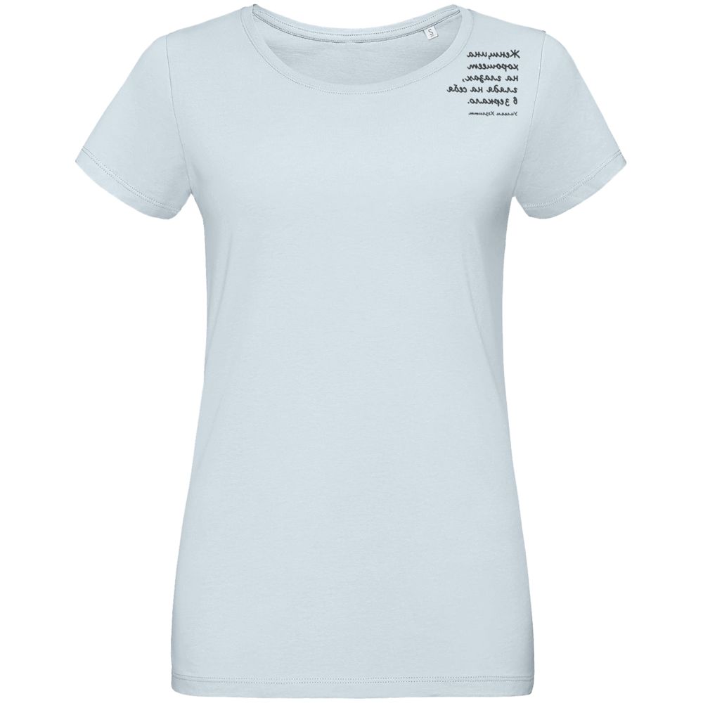 Компания «Эклектика BY» осуществляет нанесение логотипа на сувенирную продукцию: Футболка женская «Женщина хорошеет», голубая, размер S. Арт. 116444