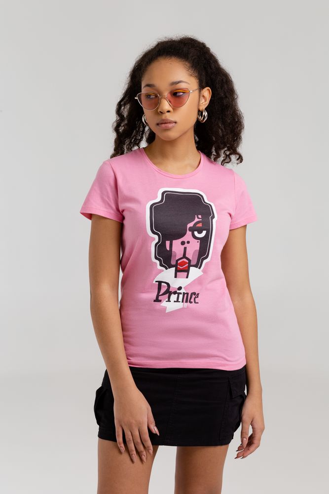 Компания «Эклектика BY» осуществляет нанесение логотипа на сувенирную продукцию: Футболка женская «Меламед. Prince», розовая, размер S. Арт. 119325