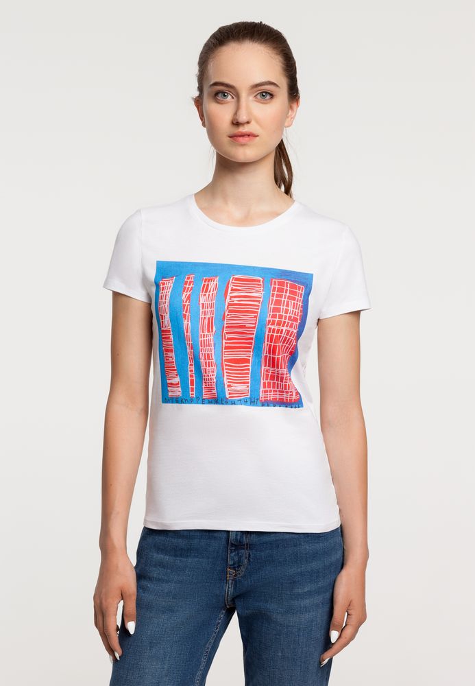 Компания «Эклектика BY» осуществляет нанесение логотипа на сувенирную продукцию: Футболка женская «Небоскребы», белая, размер S. Арт. 114740