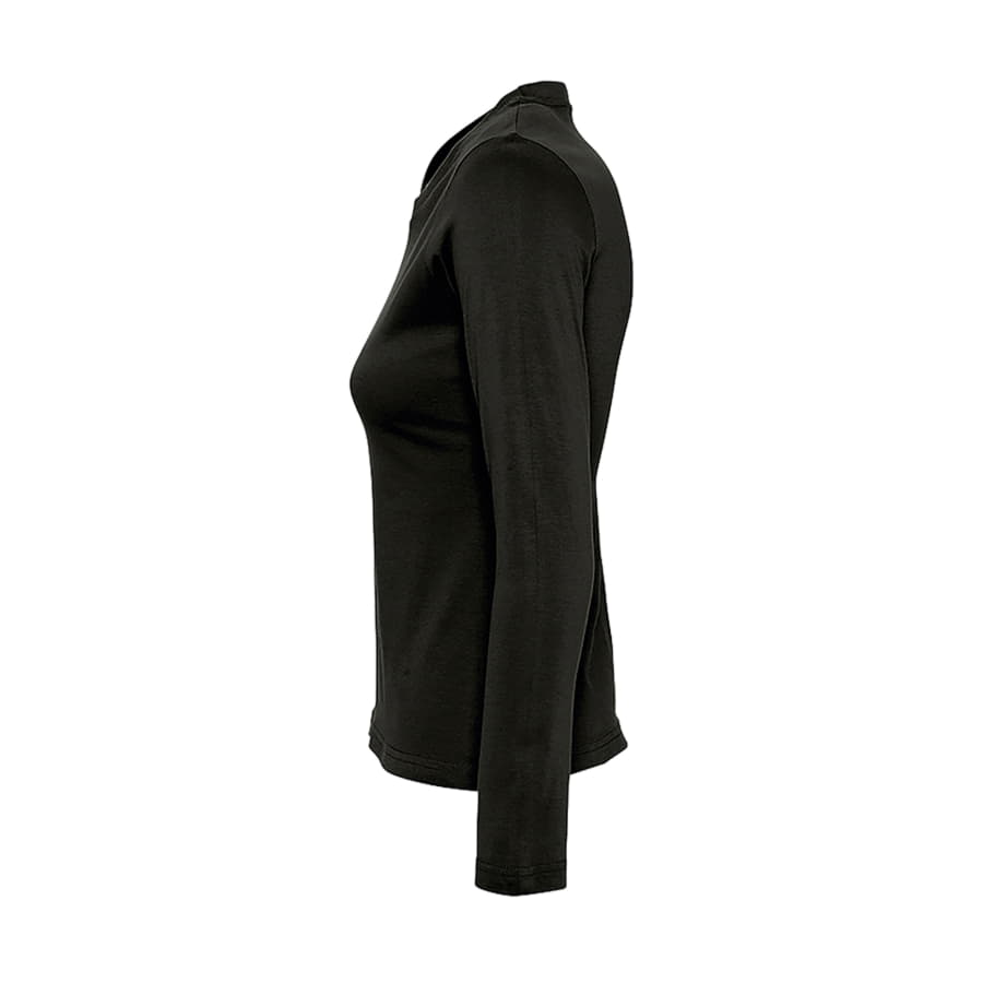 Женская футболка с круглым классическим вырезом и длинными рукавами. Модель с боковыми швами. Укрепляющая тесьма по вороту. Приталенный крой. Манжеты без резинки.