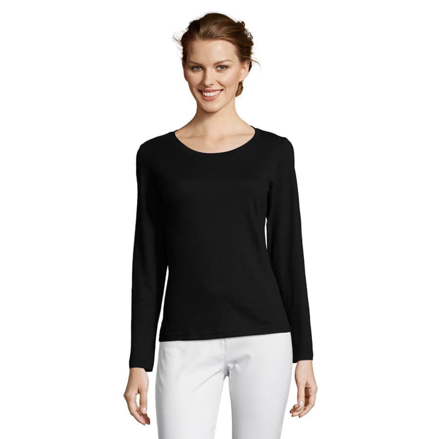 Компания «Эклектика BY» осуществляет нанесение логотипа на сувенирную продукцию: Футболка женская с длинным рукавом MAJESTIC. Арт. 260348