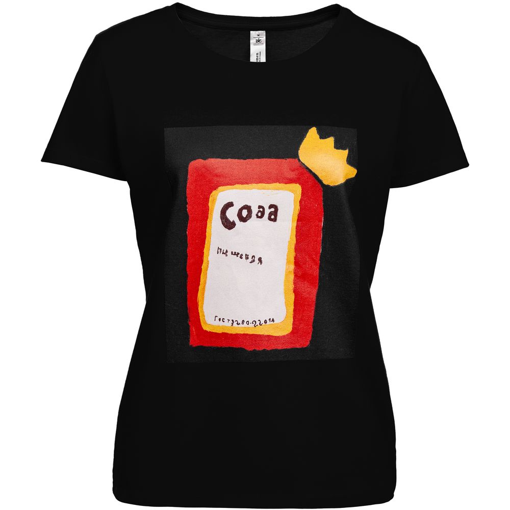 Главная ->Корпоративные подарки и рекламные сувениры на складе -> Promo одежда и аксессуары -> Футболки с принтом -> Футболка женская «Сода», черная, размер S
