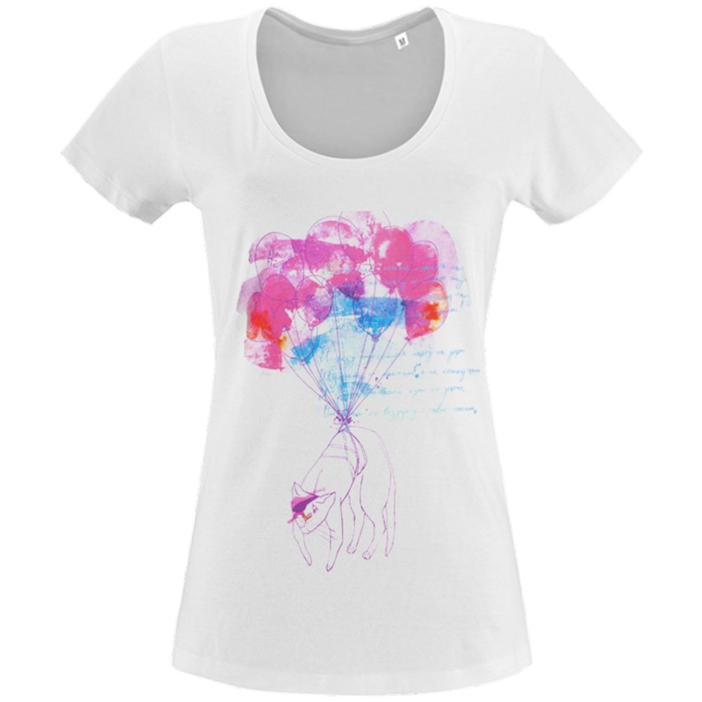 Компания «Эклектика BY» осуществляет нанесение логотипа на сувенирную продукцию: Футболка женская «Удивительная кошка», белая, размер S. Арт. 116030