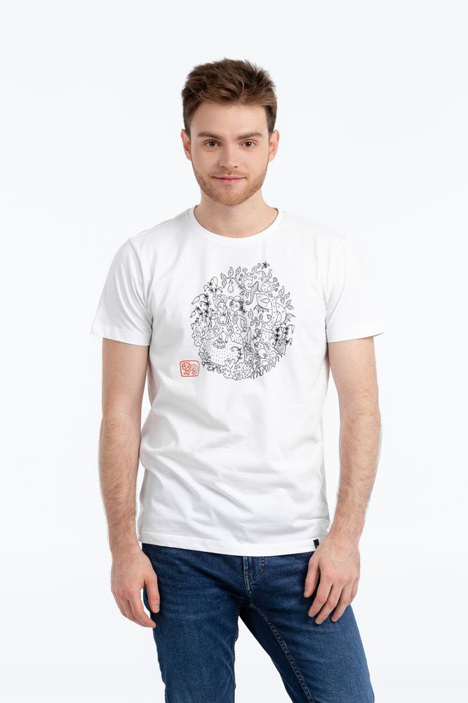 Для бренда AUTHOR`S Феликс Данкевич специально адаптировал несколько работ из своих графических циклов «Жизнь мха» и «Русское богатство», сказочных и причудливых.Мужская футболка с круглым вырезом. Двухслойная резинка предохраняет воротник от деформации после стирки.