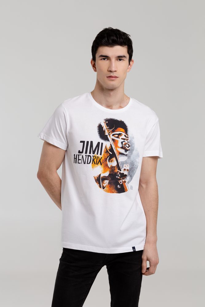Футболка «Меламед. Jimi Hendrix», белая с логотипом компании - отличный способ заявить вашу корпоративную идентичность.