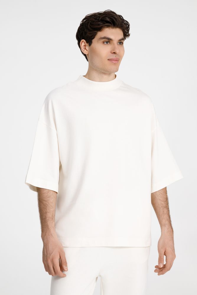 Футболка оверсайз унисекс T9, молочно-белая с логотипом компании - отличный способ заявить вашу корпоративную идентичность.