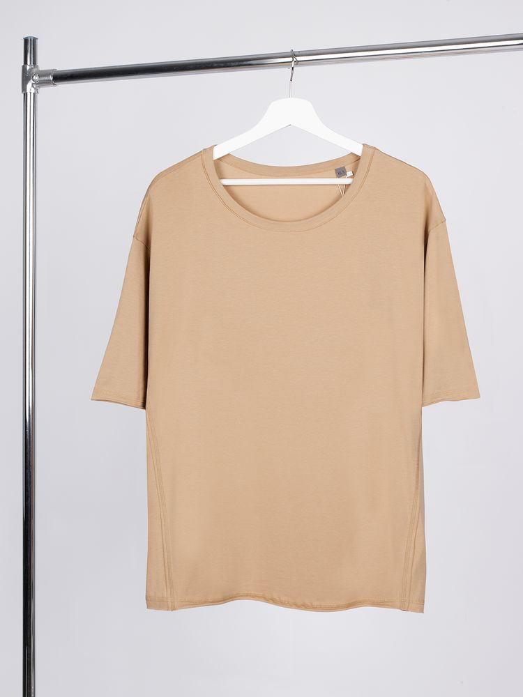 Футболка оверсайз унисекс Vozduh, бежевая, размер M/L с логотипом компании - отличный способ заявить вашу корпоративную идентичность.