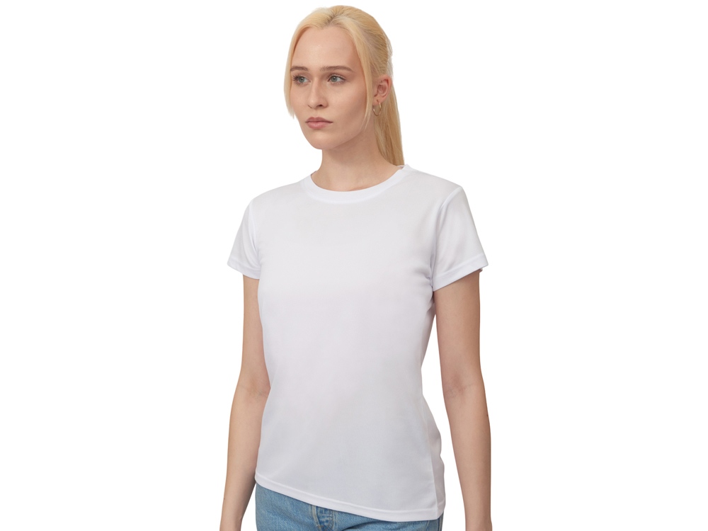 Компания «Эклектика BY» осуществляет нанесение логотипа на сувенирную продукцию: Футболка спортивная Verona женская, белый. Арт. 458452