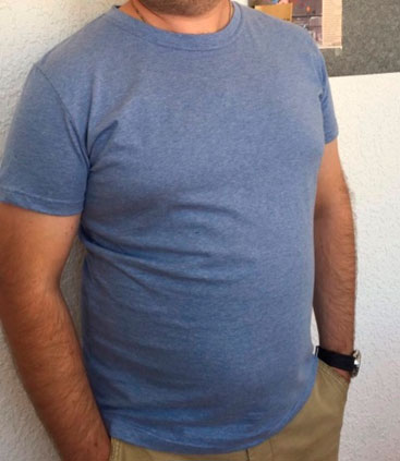 Футболка мужская прямого покроя, рукав короткий втачной. По линии горловины втачен ворот из ластичного полотна с 5% добавлением лайкры. Росток и плечевые швы обтачены бейкой из основного полотна, в край проложена отделочная строчка. Низ изделия и рукава подогнуты и подшиты плоским швом. Футболки изготовлены из 100% хлопка высокого качества. Возможна ручная стирка и в стиральной машине в щадящем режиме при температуре воды до 40°C. Перед стиркой необходимо вывернуть изделие наизнанку! Не используйте отбеливатель!