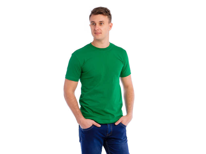 Футболка мужская прямого покроя, рукав короткий втачной. По линии горловины втачен ворот из ластичного полотна с 5% добавлением лайкры. Росток и плечевые швы обтачены бейкой из основного полотна, в край проложена отделочная строчка. Низ изделия и рукава подогнуты и подшиты плоским швом. Футболки изготовлены из 100% хлопка высокого качества. Возможна ручная стирка и в стиральной машине в щадящем режиме при температуре воды до 40°C. Перед стиркой необходимо вывернуть изделие наизнанку! Не используйте отбеливатель!