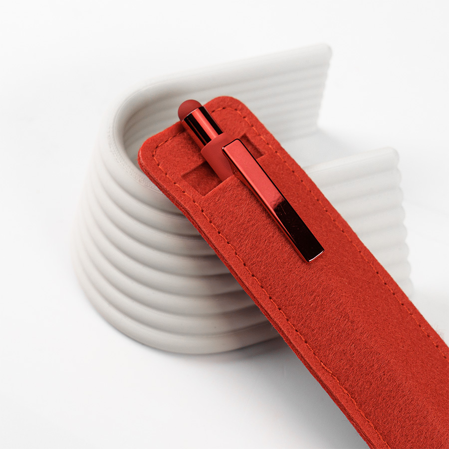 Футляр для ручки из R-Pet фетра. Форма скругленный прямоугольник. Размер: 4 х 17 см. Может быть отдельной раздаточной единицей, а так же дополнением к письменному инструменту.