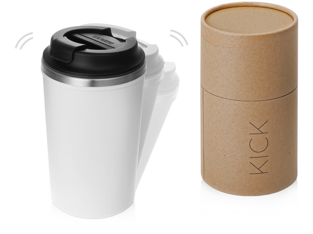 Герметичная термокружка на присоске Kick, 350 мл, белый с логотипом компании - отличный способ заявить вашу корпоративную идентичность.