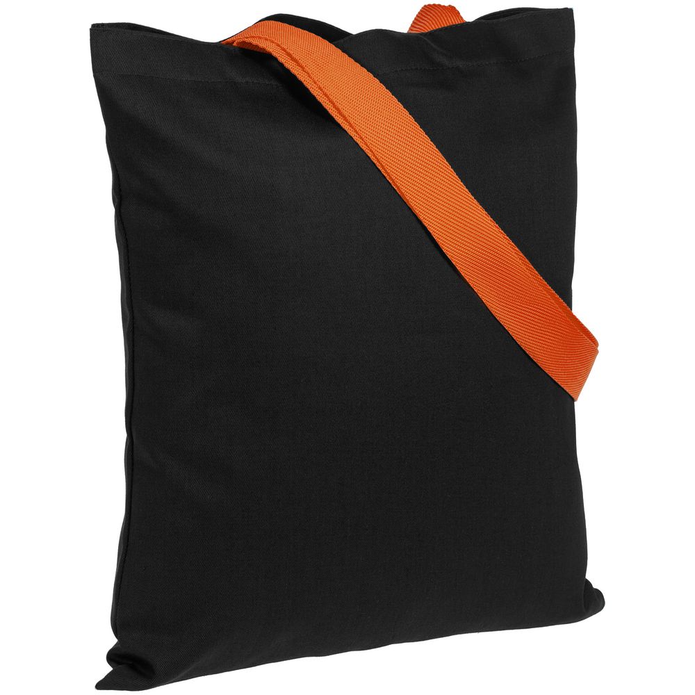 Холщовая сумка BrighTone, черная с оранжевыми ручками с логотипом компании - отличный способ заявить вашу корпоративную идентичность.