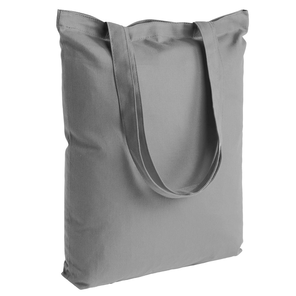 Холщовая сумка Strong 210, серая с логотипом компании - отличный способ заявить вашу корпоративную идентичность.
