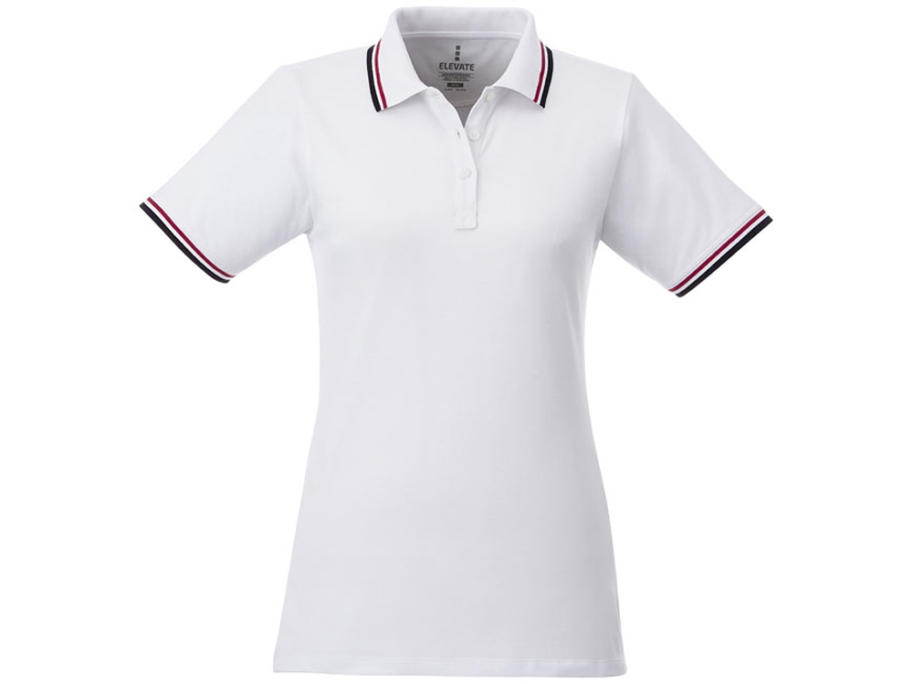 Женская футболка поло Fairfield с коротким рукавом с проклейкой, белый/темно-синий/красный с логотипом компании - отличный способ заявить вашу корпоративную идентичность.