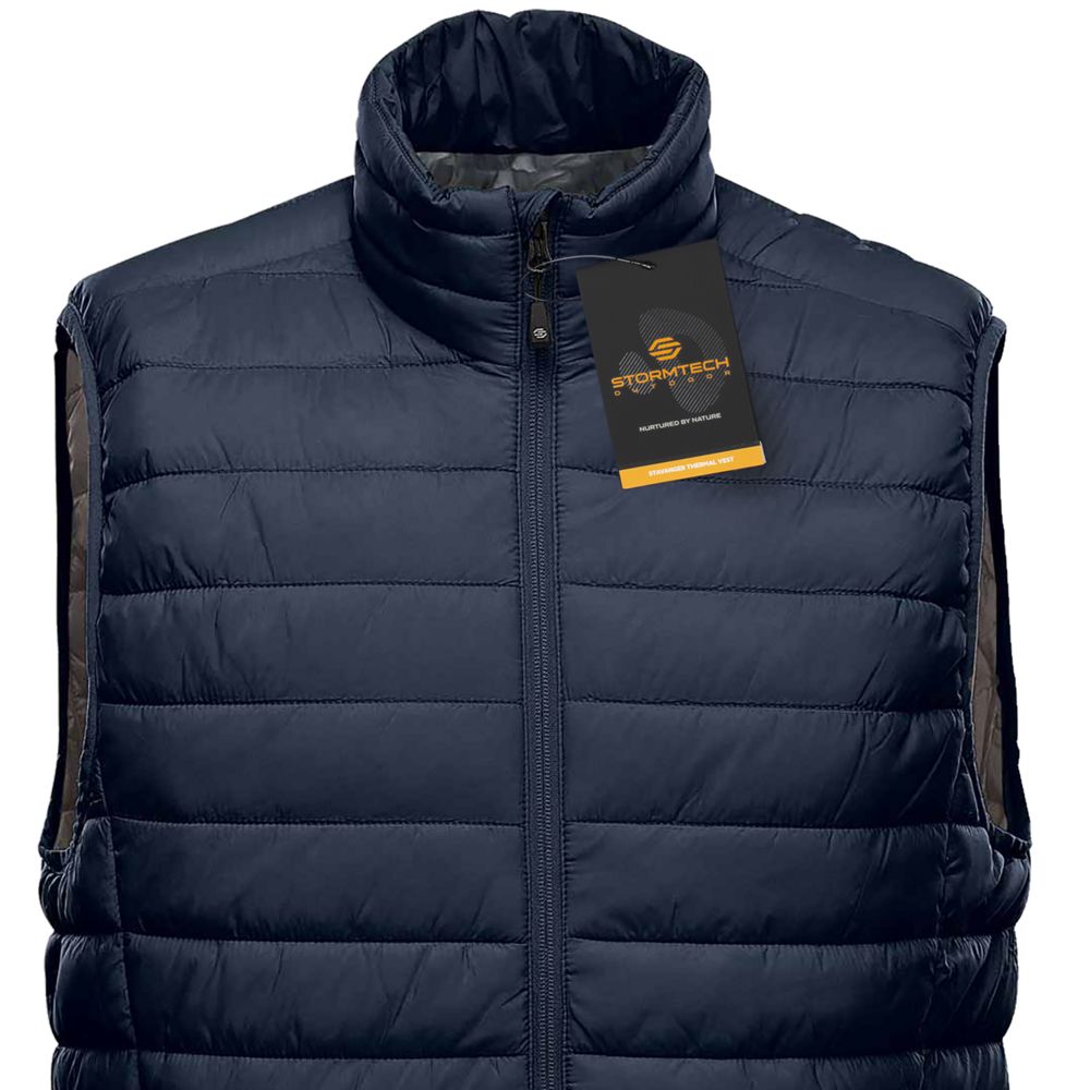 Жилет компактный мужской Stavanger темно-синий с серым, размер L с логотипом компании - отличный способ заявить вашу корпоративную идентичность.