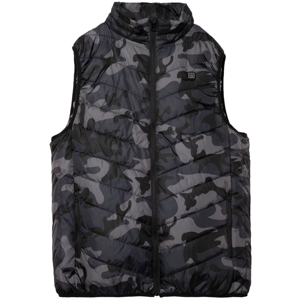 Жилет с подогревом Thermalli Valmorel, серый камуфляж с логотипом компании - отличный способ заявить вашу корпоративную идентичность.
