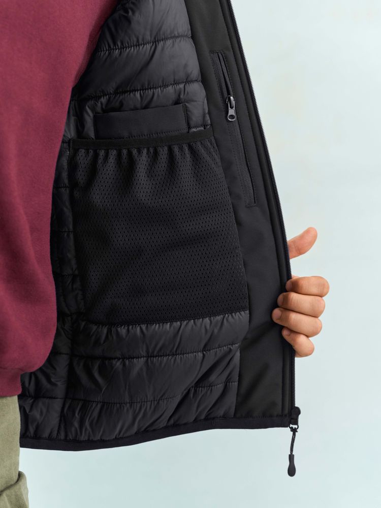 Материал: верх - переработанный полиэстер, 94%; эластан 6%, плотность 270 г/м?; софтшелл; подкладка - нейлон 100%; утеплитель - переработанный полиэстер, 100%