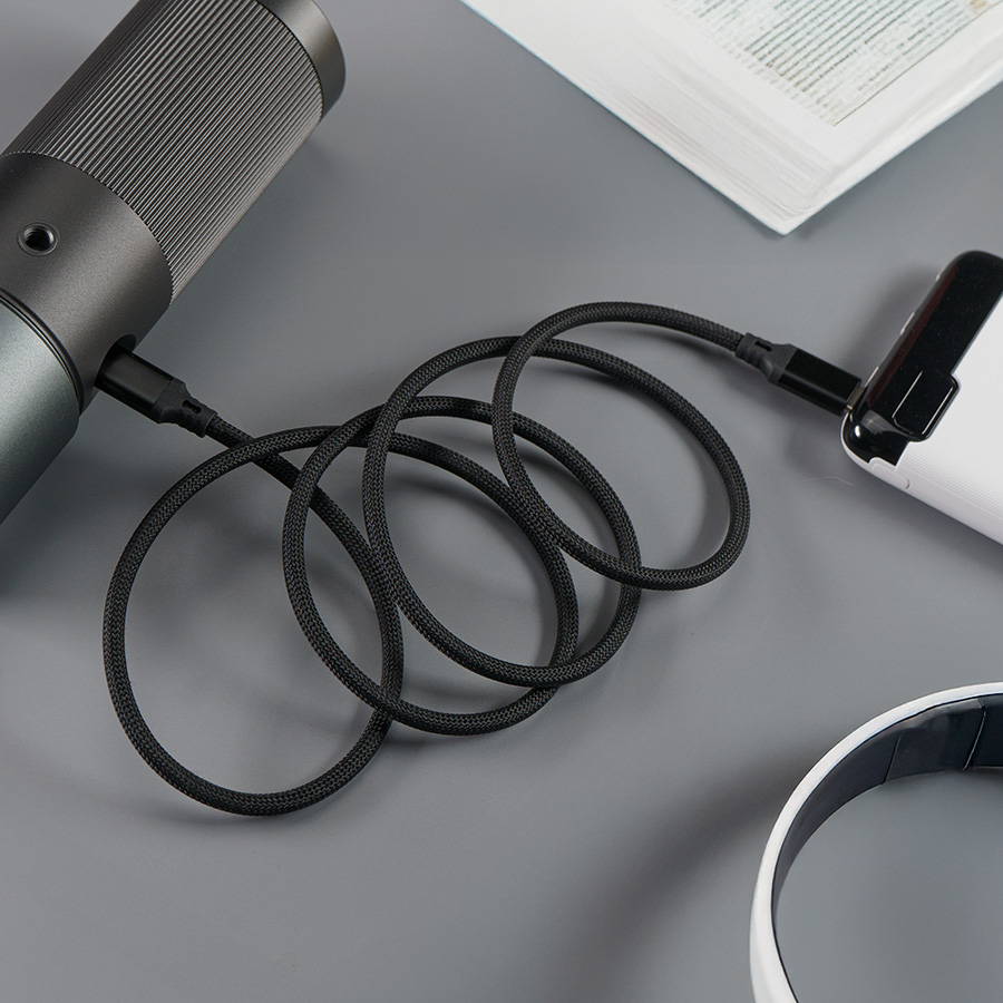 Данный кабель оснащен технологией магнитного самоскручивания, который позволяет его максимально удобно хранить и перевозить. Благодаря встроенным в оплетку магнитам с плотностью потока 650Гс кабель легко и аккуратно скручивается, оставаясь компактным и не путаясь. Прочная нейлоновая оплетка обеспечивает долговечность и устойчивость к износу, а длина в 1м делает его удобным для использования дома, в машине или офисе.
