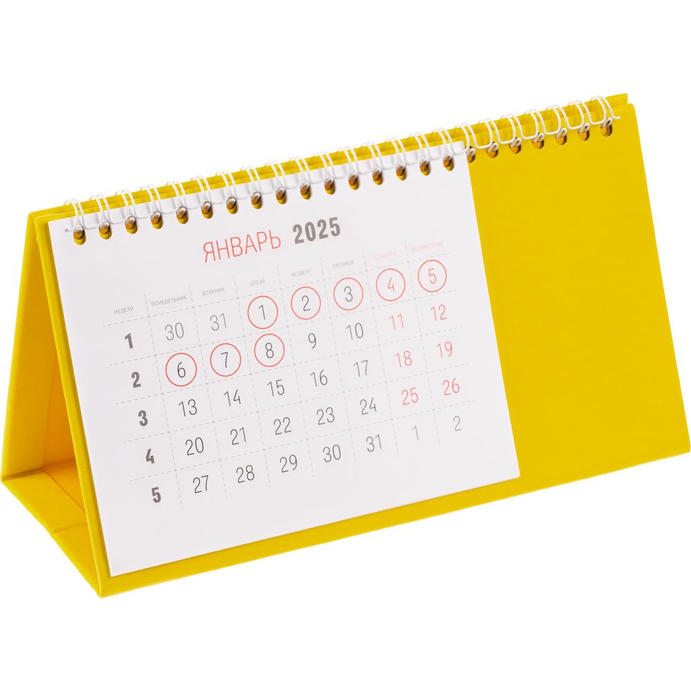 Настольный, перекидной календарь-домик выполнен из материала Latte, желтый KK.
