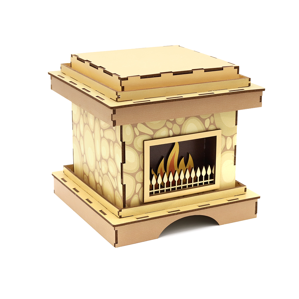 Камин малый - упаковка новогодняя из дерева с логотипом компании - отличный способ заявить вашу корпоративную идентичность.
