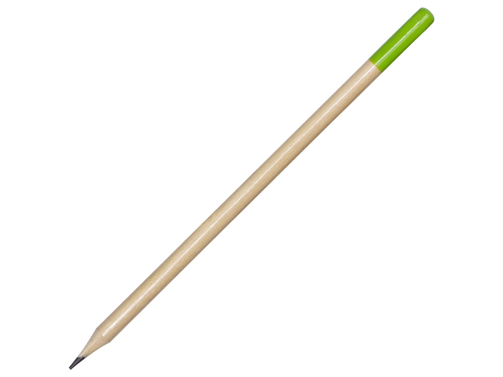 Стильный круглый чернографитовый карандаш натурального цвета с цветным наконечником станет отличным подарком и аксессуаром.