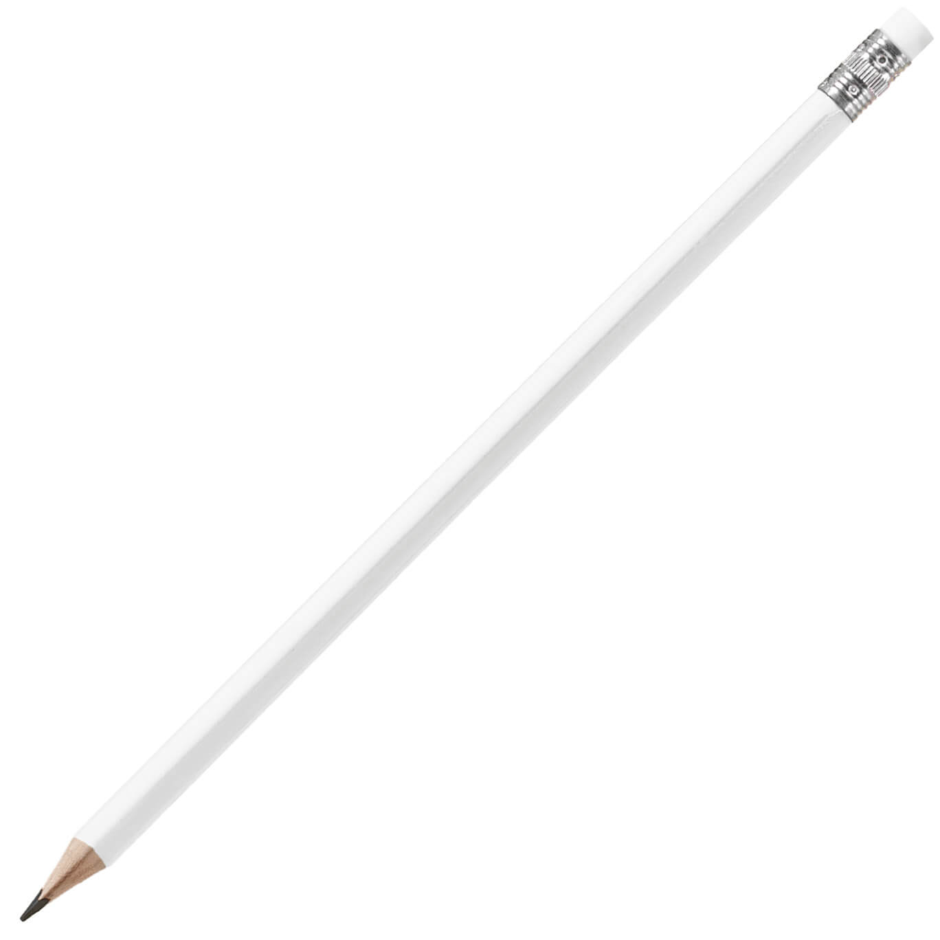 Деревянный карандаш треугольной формы с ластиком в цвет самого карандаша.