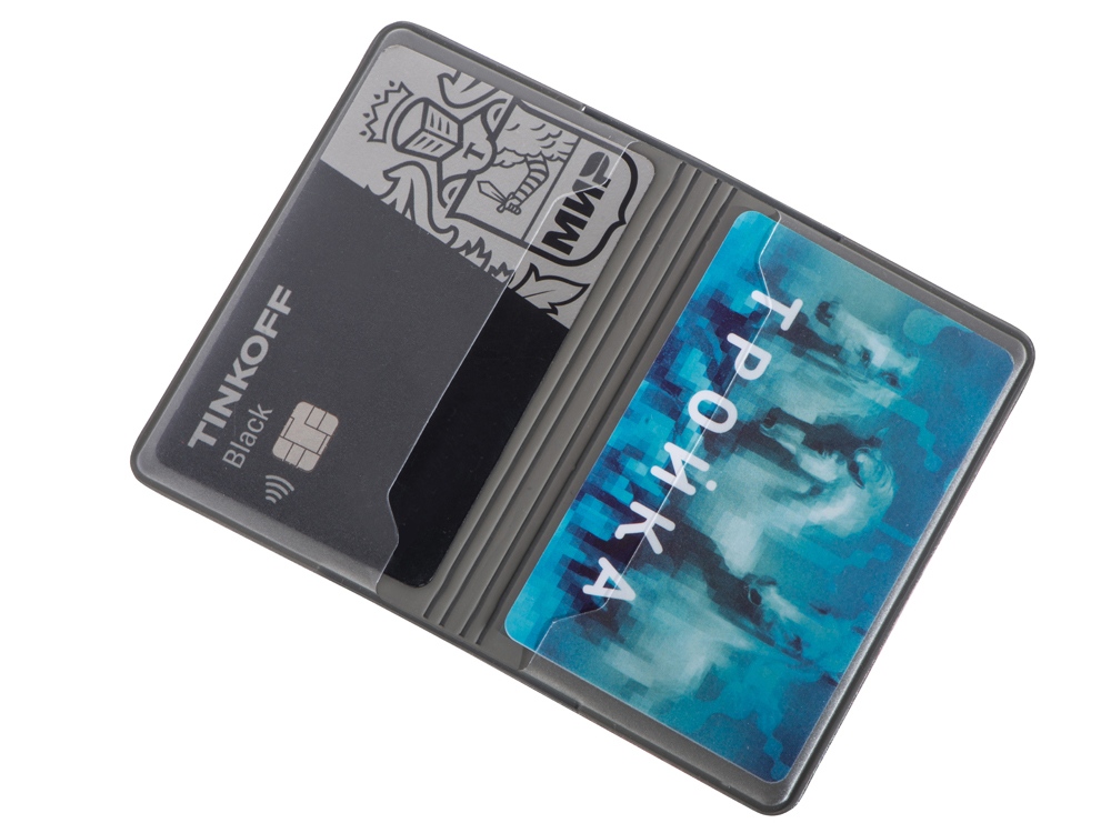 Футляр для кредитных карт в виде книжки с отделением для 2-х пластиковых карт надежно защищает лицевую и оборотную часть карты.