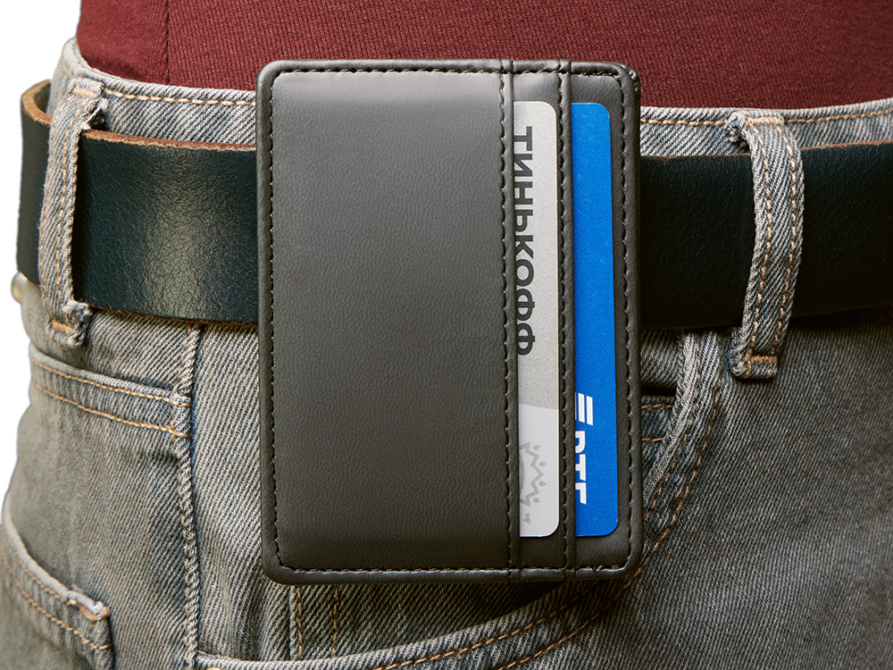 Картхолдер — стильное и практичное решение для деловых людей. В отличие от классических кошельков и портмоне он занимает совсем немного места и с лёгкостью поместится в карман. Данная модель благодаря зажиму на обороте также удобно цепляется за ремень джинс или на ланъярд.