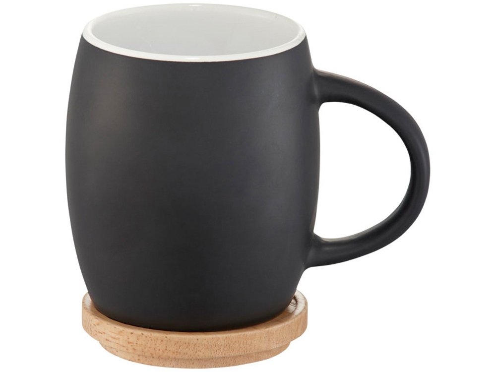 Главная ->Корпоративные подарки и рекламные сувениры на складе -> Кружки c логотипом -> Кружки -> Керамическая чашка Hearth с деревянной крышкой-костером, черный/белый