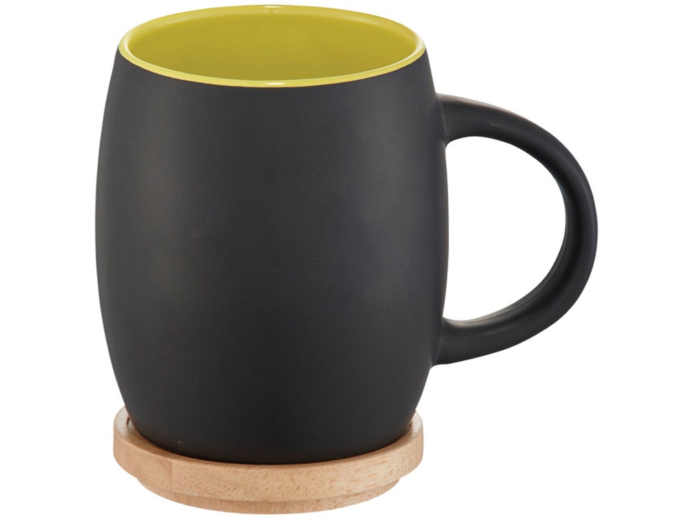 Керамическая чашка Hearth с деревянной крышкой-костером, черный/лайм с логотипом компании - отличный способ заявить вашу корпоративную идентичность.