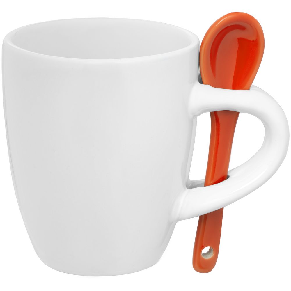 Главная ->Корпоративные подарки и рекламные сувениры на складе -> Кружки c логотипом -> Кружки -> Кофейная кружка Pairy с ложкой, белая с оранжевой