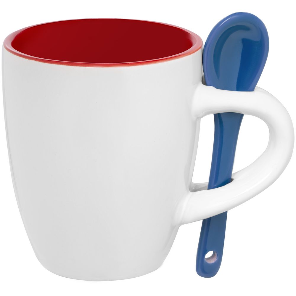 Главная ->Корпоративные подарки и рекламные сувениры на складе -> Кружки c логотипом -> Кружки -> Кофейная кружка Pairy с ложкой, красная с синей