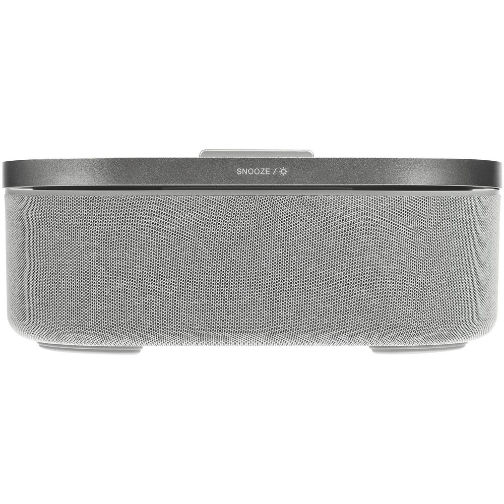 Колонка с часами и беспроводной зарядкой Veske ver.2, серая с логотипом компании - отличный способ заявить вашу корпоративную идентичность.