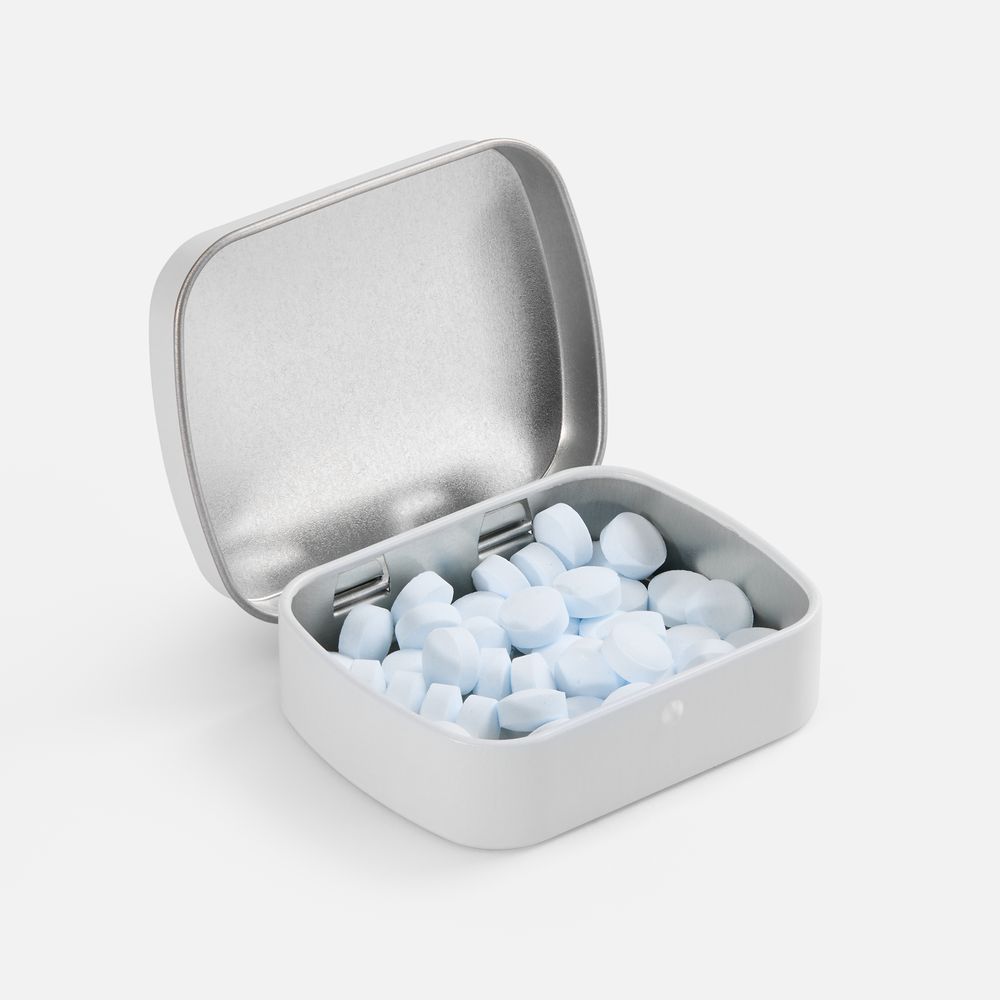 Освежающие драже без сахара с мятным вкусом. Миниатюрную жестяную коробочку удобно держать под рукой: в офисе, дома или в сумке.