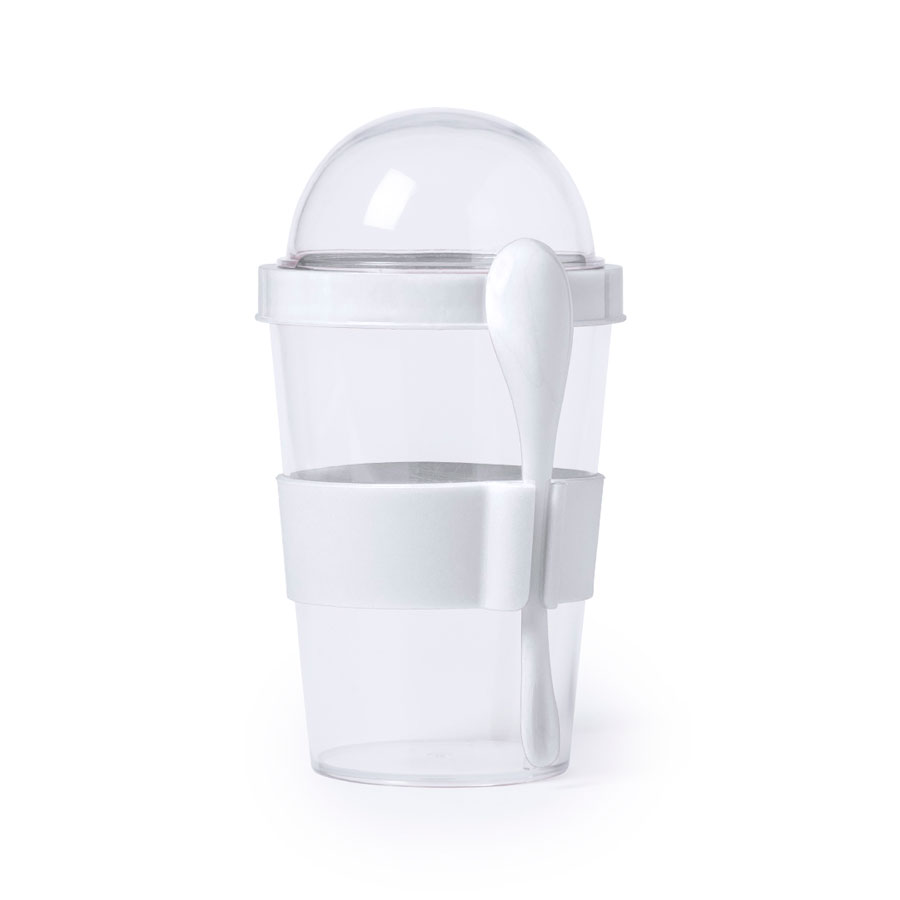 Контейнер для еды YOPLAT с ложкой, пластик с логотипом компании - отличный способ заявить вашу корпоративную идентичность.