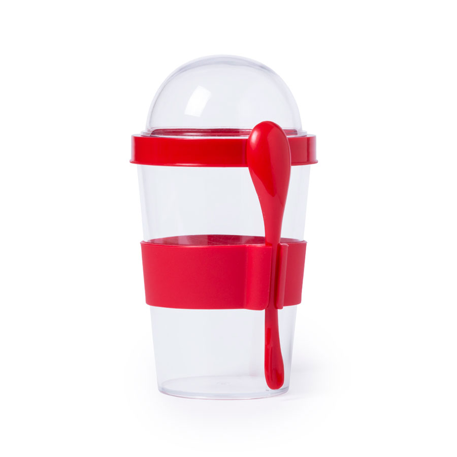 Контейнер для еды YOPLAT с ложкой, пластик с логотипом компании - отличный способ заявить вашу корпоративную идентичность.
