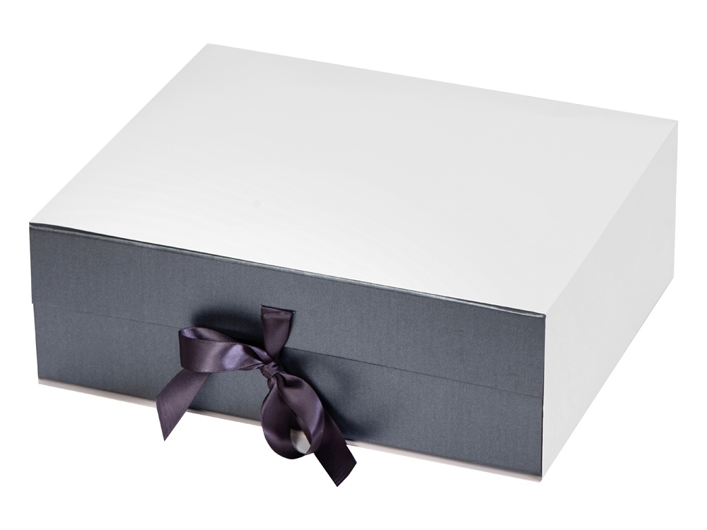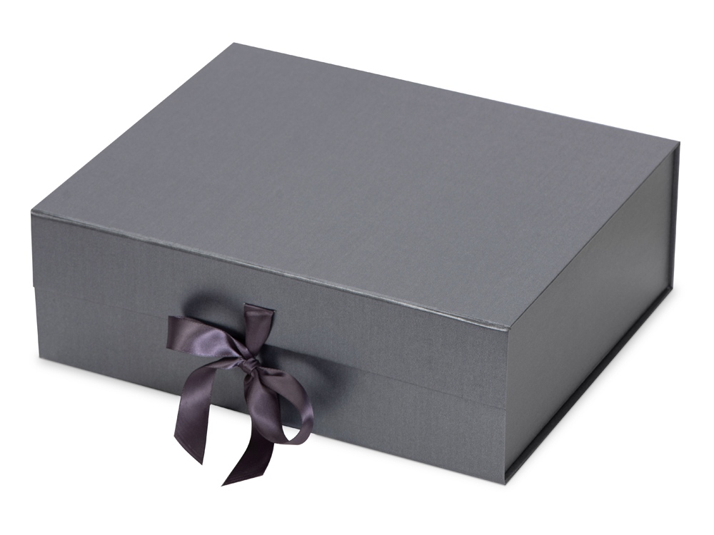 Главная ->Корпоративные подарки и рекламные сувениры на складе -> Подарочные упаковки -> Подарочная упаковка -> Коробка разборная на магнитах с лентами, графит