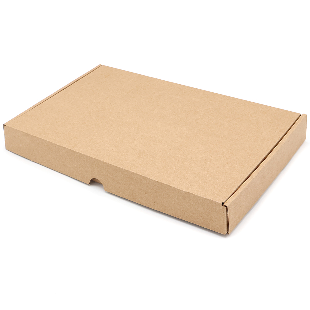 Самосборная коробка из бурого микрогофрокартона с внутренними размера 29,6*17*3 см.