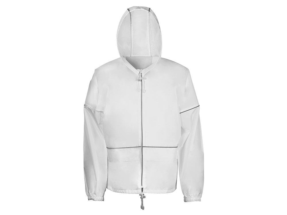 Главная ->Корпоративные подарки и рекламные сувениры на складе -> Promo одежда и аксессуары -> Дождевики -> Короткий дождевик Tornado со светоотражающими элементами, белый