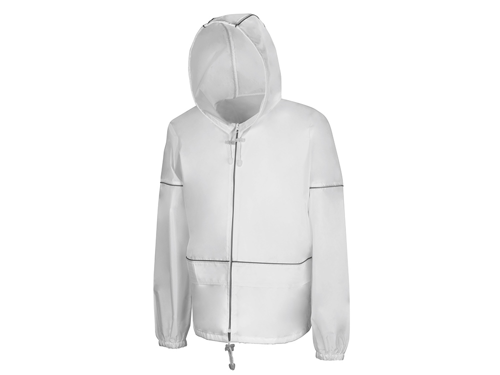 Главная ->Корпоративные подарки и рекламные сувениры на складе -> Promo одежда и аксессуары -> Дождевики -> Короткий дождевик Tornado со светоотражающими элементами, белый