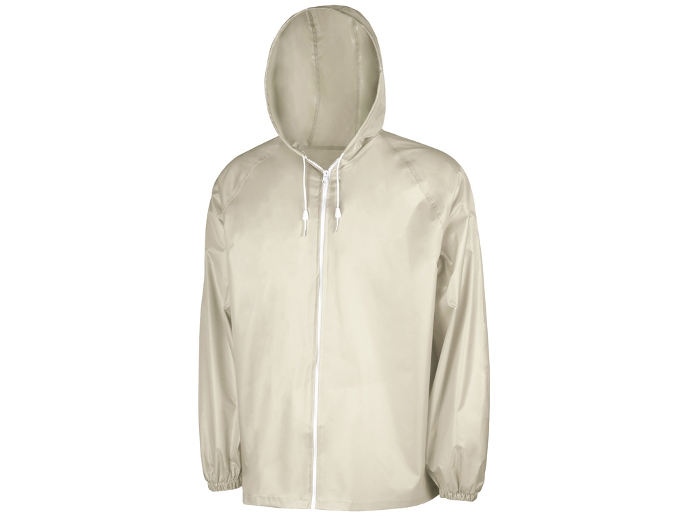 Короткий дождевик Maui из полиэстера, молочный с логотипом компании - отличный способ заявить вашу корпоративную идентичность.
