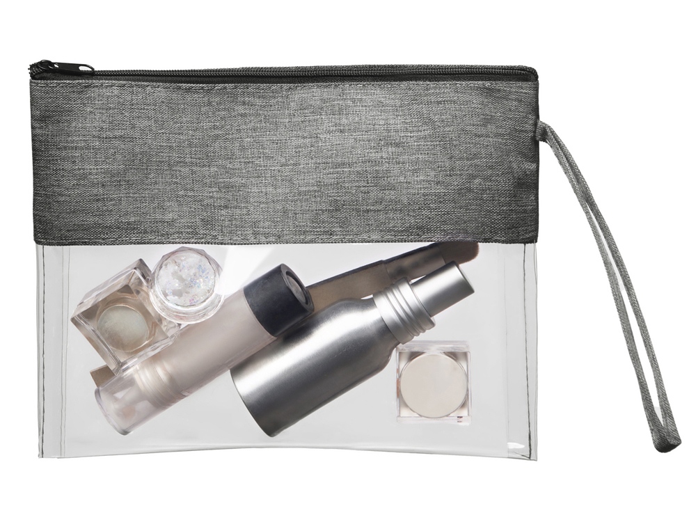 Главная ->Корпоративные подарки и рекламные сувениры на складе -> Для милых дам -> Косметички -> Косметичка из PVC и ткани Leony, прозрачный/темно-серый