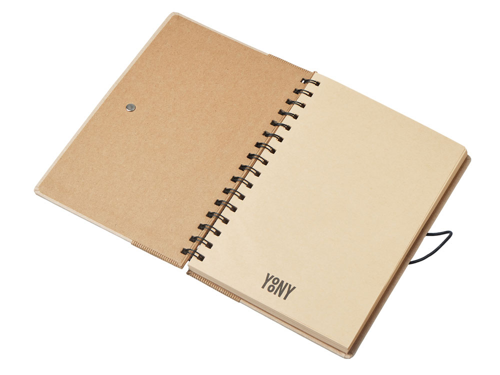 Крафтовый блокнот на спирали с фиксирующей резинкой. 80 листов коричневой бумаги 70 г/м2.