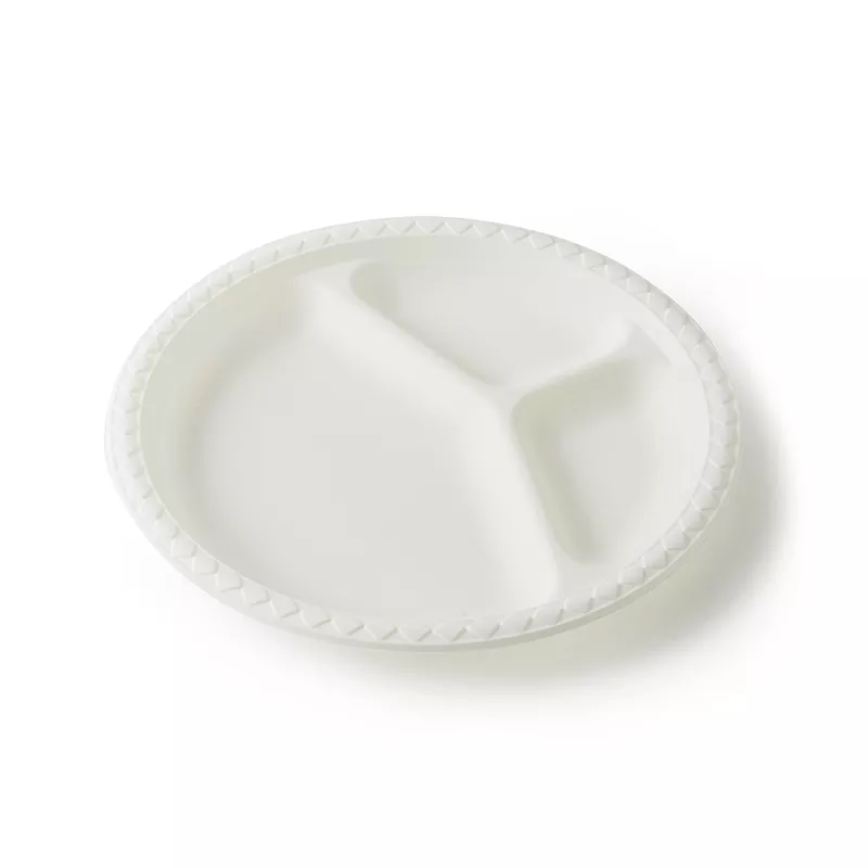 Круглая тарелка с разделением на 3 зоны из кукурузного крахмала 10 дюймов с логотипом компании - отличный способ заявить вашу корпоративную идентичность.